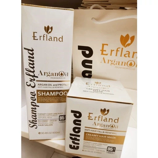 ERFLANDشامپو بدون سولفات ارفلند حجم ۹۰۰میل حاوی روغن آرگان و ضد ریزش با ضمانت اورجینال ساخت کشور ایتالیا