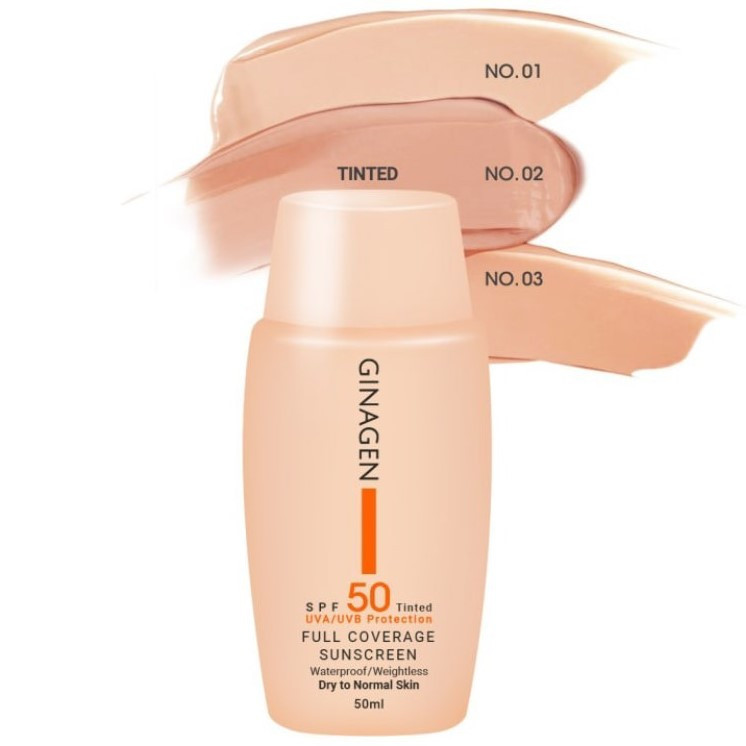 خرید و قیمت کرم ضد آفتاب رنگی ژیناژن سری dry to normal skin مدل SPF50 محافظ UVA ،UVB، ضد آب، مناسب پوستهای خشک و معمولی حجم 50 میلیلیتر