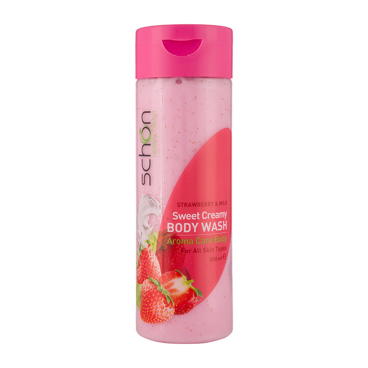 شامپو بدن کرمی شیر توت فرنگی شون حاوی ذرات اسکراب طبیعی گردو جهت لایه برداری ملایم انواع پوست 300میل